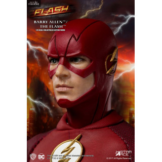 Figurine officielle en PVC/Tissu de The Flash d'environ 22,5 centimètres de haut à l'échelle 1/8. Elle est fabriquée par Star Ace.