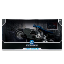 Figurine officielle de Batcycle with Batman. Le fabricant est McFarlane Toys.