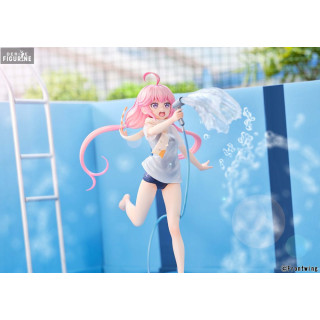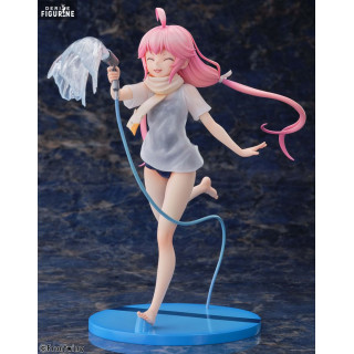 Cette figurine capture Murasaki dans une version estivale rafraîchissante, mettant en lumière une facette plus décontractée du personnage. Avec une posture dynamique et pleine de vie, elle est représentée en maillot de bain bleu marine sous un t-shirt transparent, ajoutant un réalisme saisissant grâce à l’effet mouillé subtil. Son expression joyeuse et ses longs cheveux roses virevoltant dans l’air renforcent l’impression de mouvement. Tenant un tuyau d’arrosage d’où jaillit de l’eau, la scène évoque un moment de détente et d’insouciance, loin des lourdes responsabilités qu’elle porte habituellement.