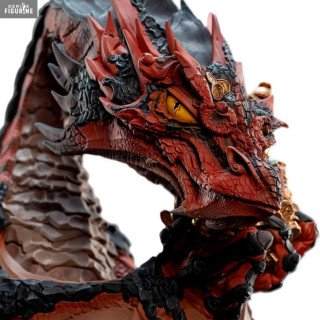 Figurine officielle de Smaug en vinyle mesurant environ 20 x 30 x 19 centimètres. Elle est issue de la collection Mini Epics. Le fabricant est Weta Workshop.