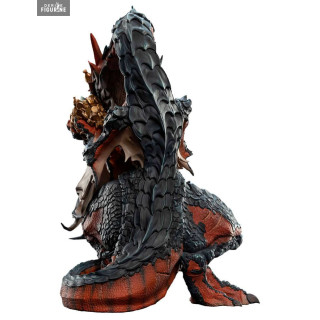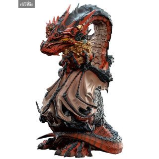 Smaug est un dragon vivant sous la montagne Solitaire, où il a dérobé de nombreux trésors des nains d'Erebor, y compris la précieuse Arkenstone. Vous pouvez donc l'admirer avec cette belle statuette qui est riche en détails, aussi bien avec le trésor qu'il a dans les mains, la texture de ses écailles ou les cicatrices qui recouvrent son corps.