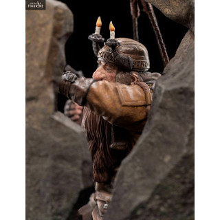 Figurine officielle de Dwarf Miner en résine mesurant environ 11x17x11 centimètres. Le fabricant est Weta Workshop.