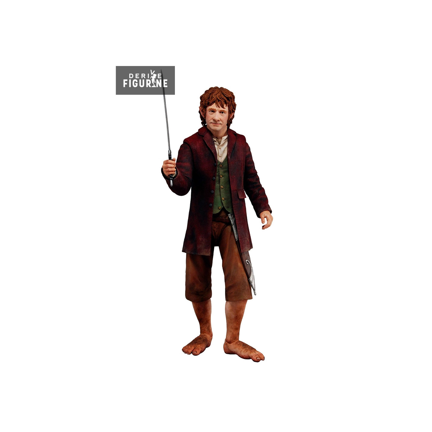Figurine officielle de Bilbo Sacquet en PVC d'environ 30 centimètres de haut à l'échelle 1/4. Le chef de la famille Bessac en figurine. Le fabricant est NECA.
