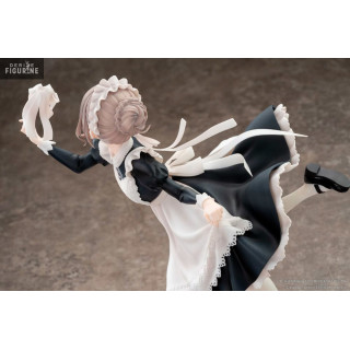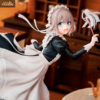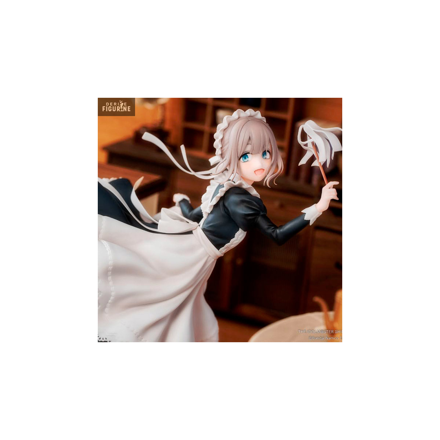 Asahi Serizawa est une jeune femme très curieuse, amicale et qui n'a pas peur d'aller vers les gens qu'elle ne connaît pas. Elle fait partie d'un groupe d'idoles mais il ne faut pas oublier de faire un peu de ménage de temps en temps, et pour cela elle a enfilé une tenue de maid. C'est d'ailleurs un visuel qui vient d'une carte SSR et même pendant cette tache qui n'est pas toujours amusante, elle garde le sourire.