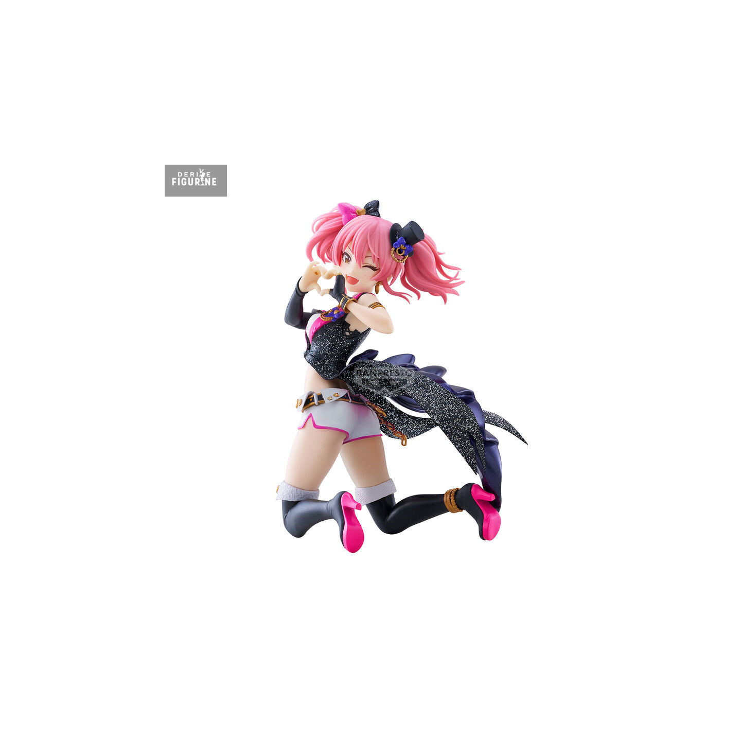 La figurine de Mika Jougasaki, Effect and Glitter de la collection Espresto par Banpresto capture parfaitement l'essence vibrante et énergique de Mika. Mesurant environ 16 centimètres de haut, cette figurine présente Mika dans une pose dynamique et pleine de vie, formant un cœur avec ses mains tout en faisant un clin d'œil malicieux. Sa tenue, un mélange de couleurs vives et de détails scintillants, reflète son style audacieux et son amour pour la scène. Les textures et les motifs sur son costume sont minutieusement sculptés, mettant en valeur le travail détaillé de Banpresto pour capturer chaque aspect de son personnage. Les éléments scintillants ajoutent une dimension de glamour, rappelant ses performances électrisantes sur scène.