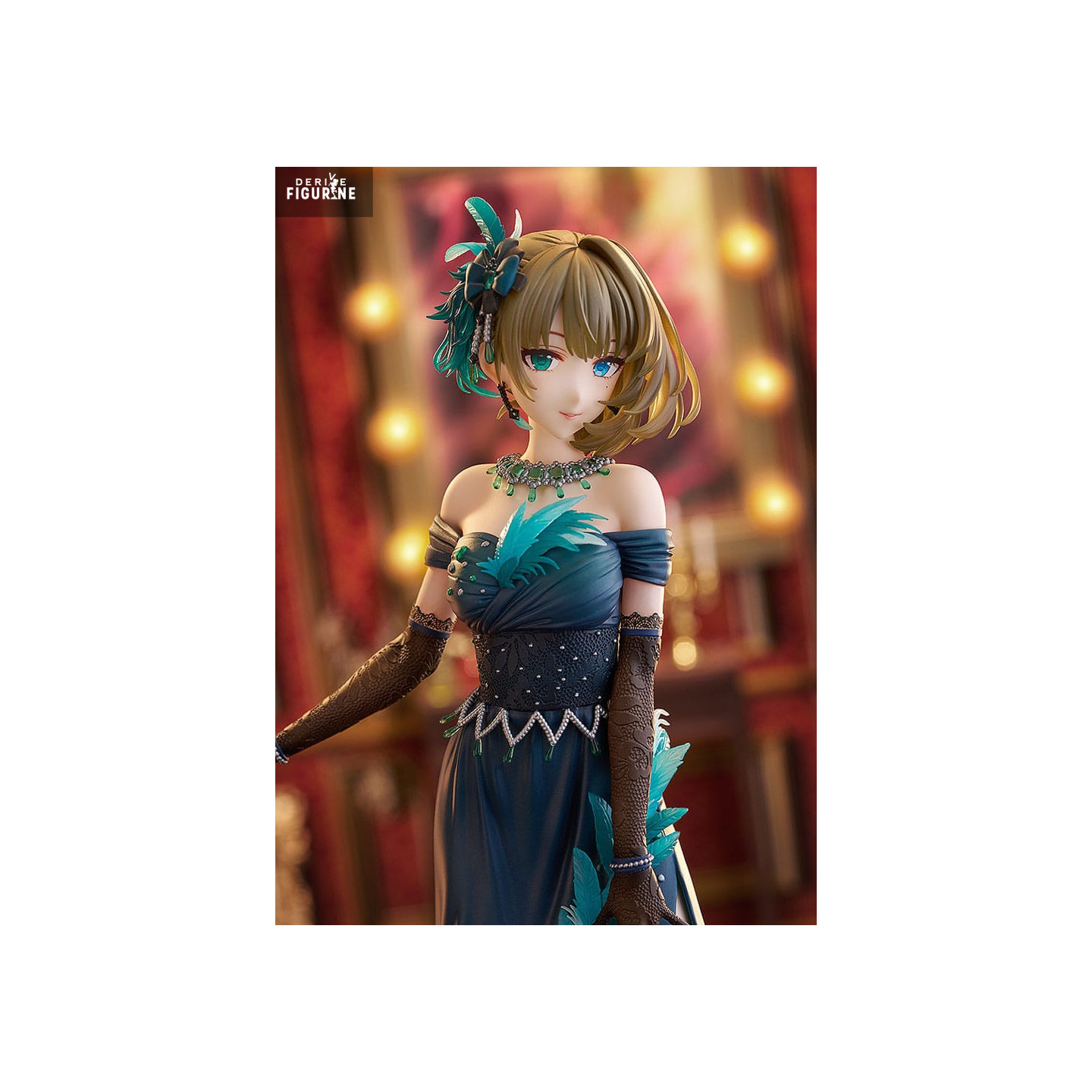 Kaede Takagaki, l'une des idols les plus élégantes et captivantes de The Idolmaster Cinderella Girls, est magnifiquement représentée dans cette figurine intitulée Pretty Liar. Connu pour son charme mature et sa voix envoûtante, Kaede dégage une aura unique qui la distingue dans le monde des idols. Dotée d'une personnalité calme et raffinée, elle sait capturer l'attention de son public avec une grâce naturelle. Sa tenue de soirée somptueuse, ornée de plumes et de motifs délicats, reflète parfaitement son élégance et son talent indéniable, tout en ajoutant une touche de mystère à son apparence.