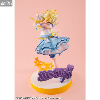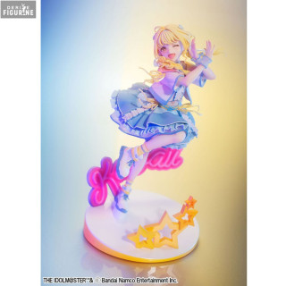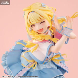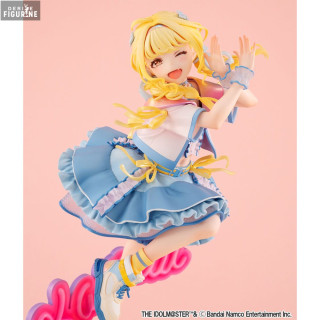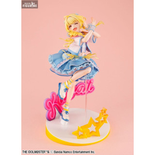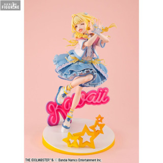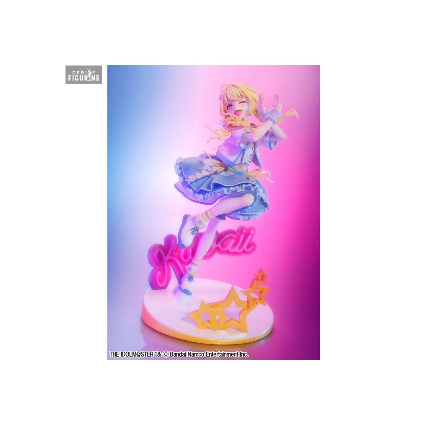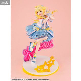 La figurine, d’environ 25 centimètres de haut, est fabriquée en PVC de haute qualité et présente un niveau de détail remarquable. De ses mèches blondes ondulées à sa posture dynamique en passant par l'expression malicieuse de son visage, tout est conçu pour refléter la personnalité unique de Kotone. Les éléments du socle, incluant l'inscription "Kawaii" et des étoiles jaunes, ajoutent une touche vibrante et dynamique à l’ensemble, rendant cette pièce incontournable pour les collectionneurs et fans de The Idolmaster.
