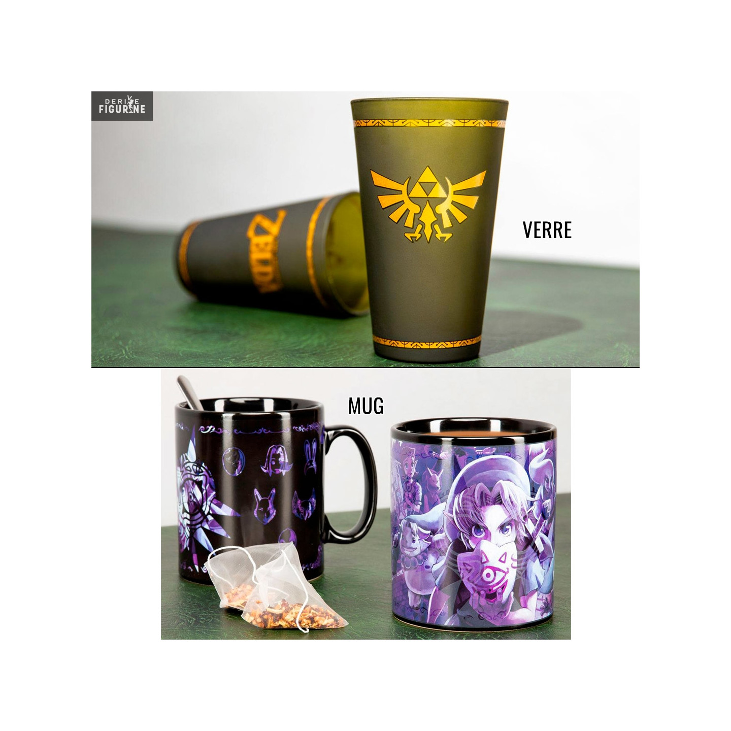 Les fans de The Legend of Zelda vont être aux anges avec ces deux articles. D'une part vous avez un verre avec le logo du jeu et l'emblème d'Hyrule d'une contenance de 50 centilitres et de l'autre un mug à effet thermique en céramique d'une contenance de 90 centilitres. Lorsque vous versez un liquide chaud à l'intérieur, vous pourrez voir apparaître une belle image de Majora's Mask.