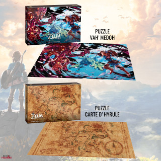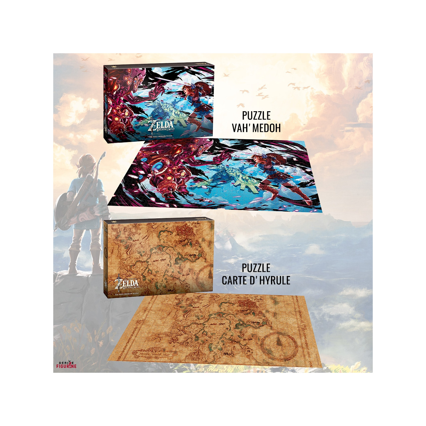 Puzzle officiel au choix entre la carte d'Hyrule ou Vah'Medoh de 750 pièces qui mesure environ 35x66 centimètres. Le fabricant est USAopoly.