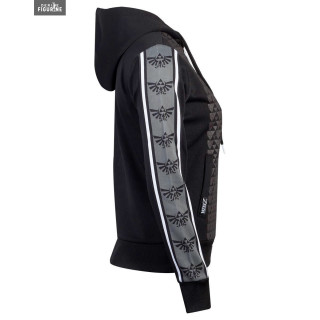 Ce sweat à capuche femme The Legend of Zelda représente majoritairement la Triforce qui est le symbole et l'emblème du royaume d'Hyrule. La veste arbore des couleurs très chics avec un noir et blanc qui fonctionne parfaitement et qui change des vêtements habituels que l'on trouve sur la licence.