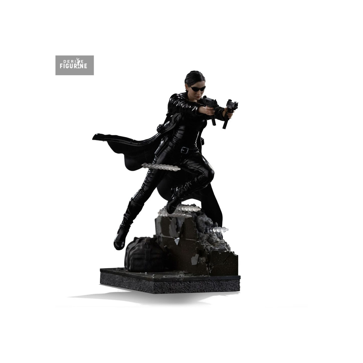 Figurine officielle de Trinity en résine mesurant environ 22 centimètres de haut, à l'échelle 1/10. Elle est issue de la collection Art Scale. Le fabricant est Iron Studios.