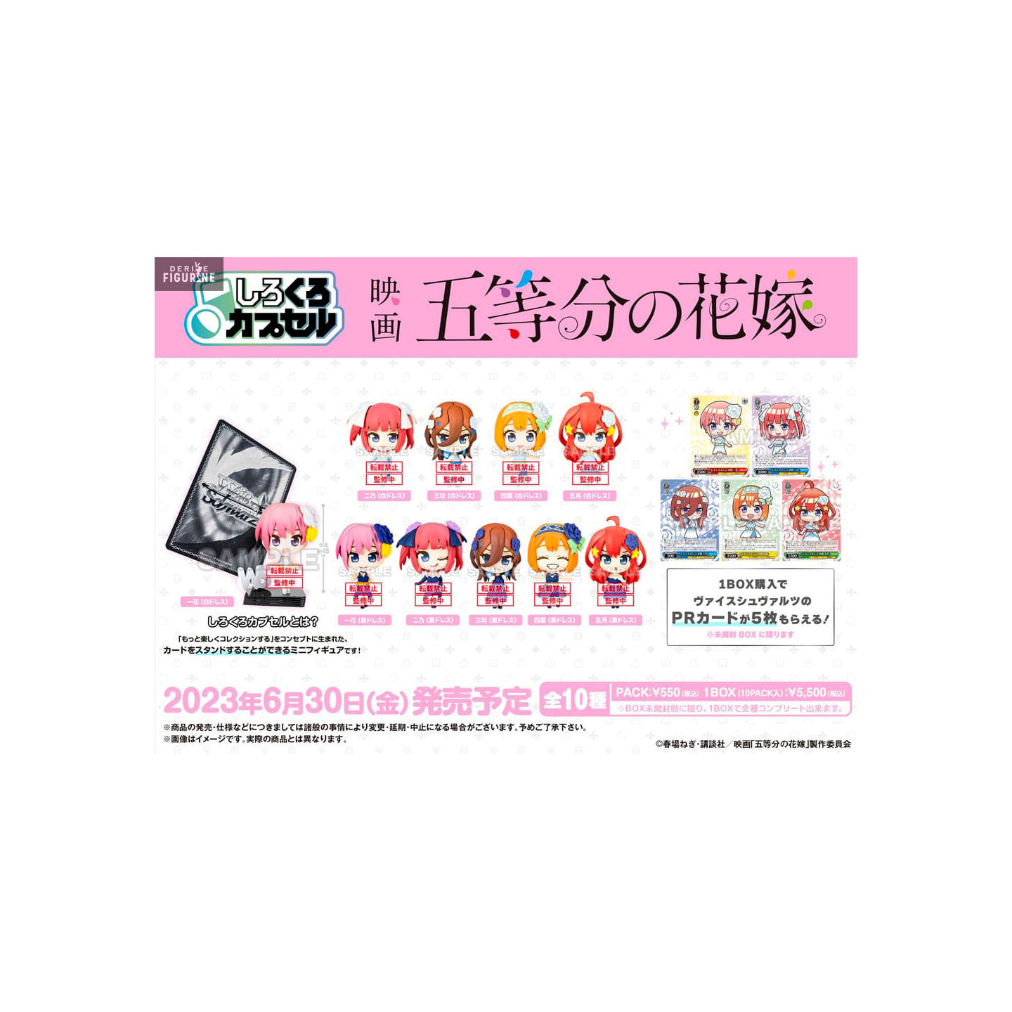 Ces nouvelles capsules des Quintessential Quintuplets vous permettent d'obtenir l'une des six sœur soit dans une jolie robe bleue et blanche avec leur bijoux de cheveux blanc, soit dans une tenue qui fait un peu plus sophistiquée bleue foncée et les fleurs dans leurs cheveux assortis. Elles sont toutes adorables, que ce soit Miku, Ichika, Itsuki, Yotsuba ou Nino, mais c'est le hasard qui va décider laquelle vous obtiendrez.