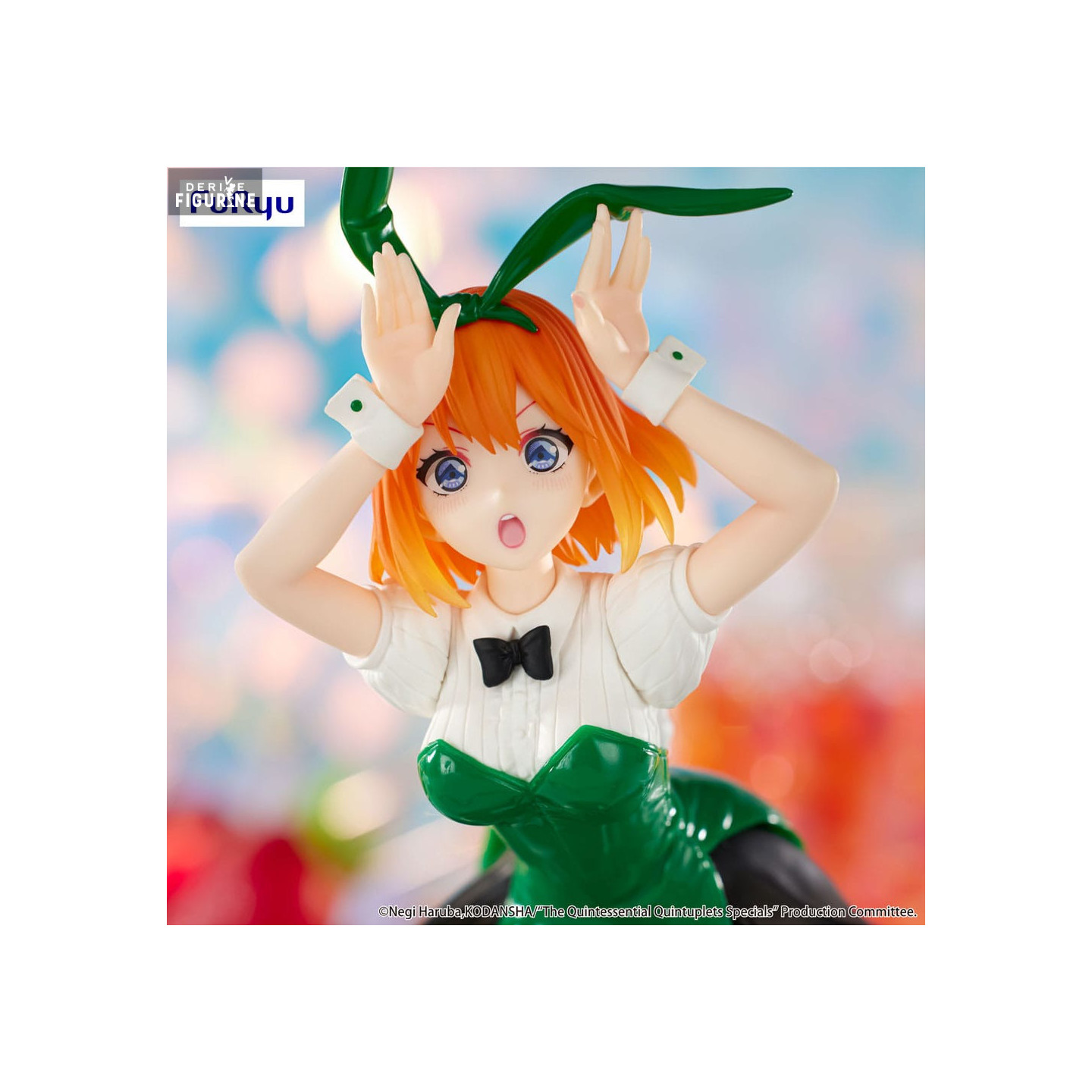 Voici une figurine captivante de Yotsuba Nakano de "The Quintessential Quintuplets Movie", qui présente Yotsuba dans une variante de couleur ludique de son costume de lapin, signé Trio-Try-iT par FuRyu. Haute de 22 cm et réalisée en PVC, elle illustre parfaitement la personnalité enjouée et optimiste de Yotsuba, la quatrième des sœurs Nakano. Elle est connue pour sa nature active et sa gentillesse, souvent aperçue en train d'aider les autres et possédant un talent particulier pour les activités sportives, ce qui reflète son esprit dynamique et sa bonne humeur.