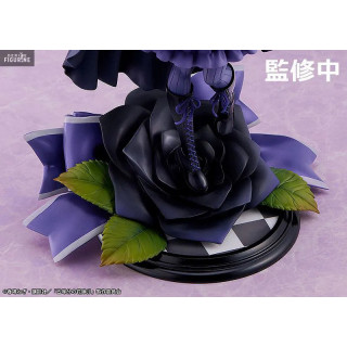 Chaque détail est pensé pour refléter le tempérament affirmé de Nino : la robe bouffante en dégradé de mauve, le bustier serré, les manches longues ouvertes, les collants rayés et les bottines à lacets lui donnent un style gothique royal. La rose noire à ses pieds, accompagnée de feuilles vertes et de pétales violets, renforce cette ambiance mystérieuse et élégante.