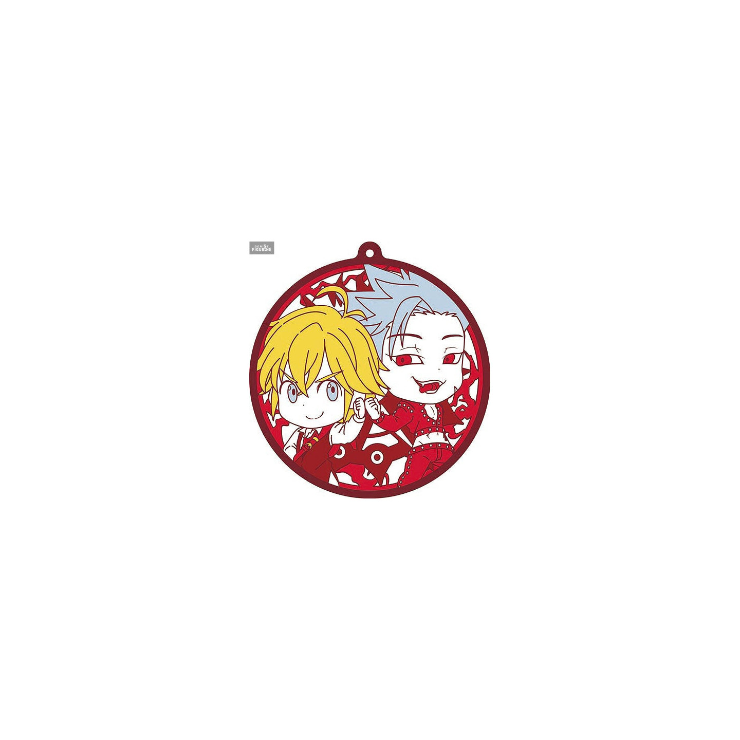 Porte-clés officiel de The Seven Deadly Sins en PVC qui mesure environ 7,5 centimètres de diamètre. Le fabricant est Banpresto. Contient uniquement le porte-clé Mélodias et Ban sur fond rouge.