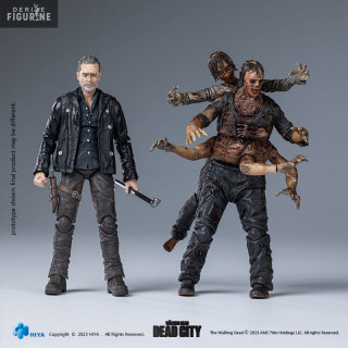 La collection Exquisite Mini de Hiya Toys offre une précision exceptionnelle malgré la taille réduite de la figurine. Le Walker King est représenté dans une pose dynamique, prêt à défier tout survivant imprudent qui oserait s'aventurer dans Dead City. La base incluse complète l'ensemble, offrant une stabilité visuelle tout en ajoutant une dimension narrative à la figurine.