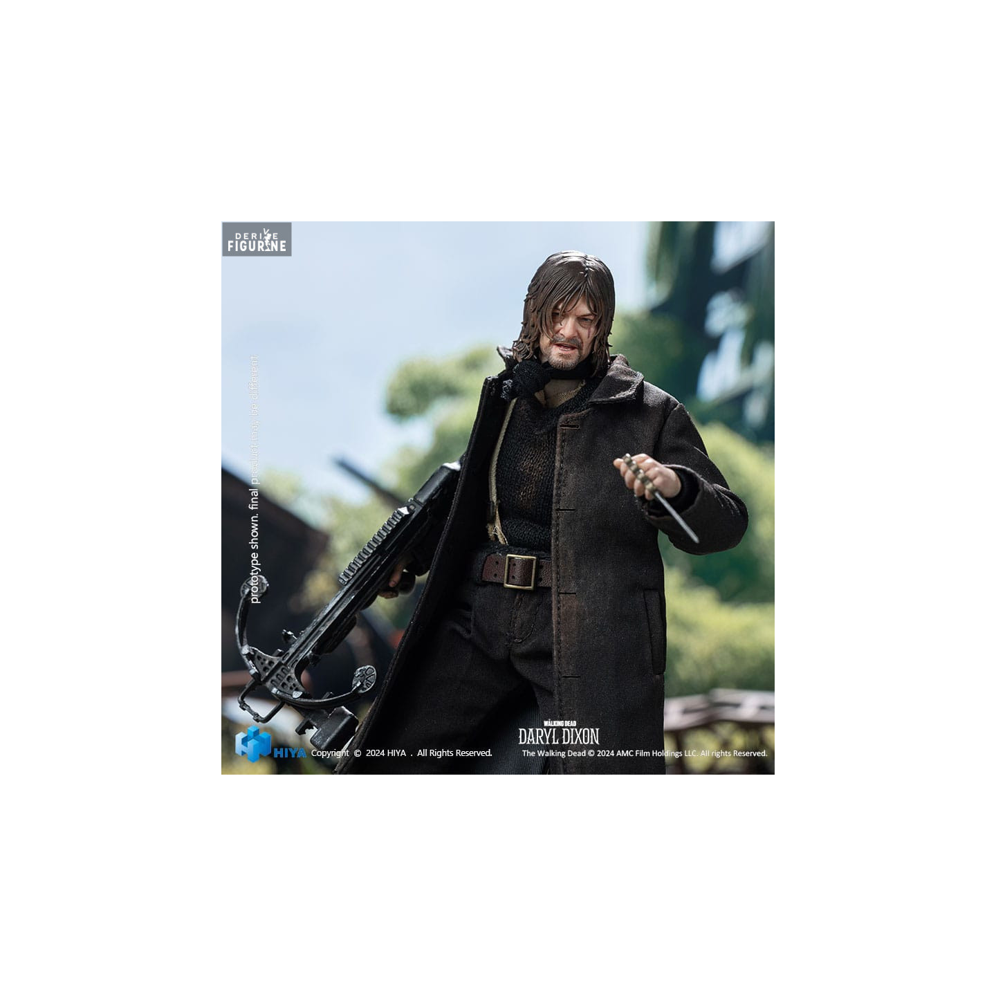 Figurine officielle de Daryl Dixon mesurant environ 16 centimètres de haut, à l'échelle 1/12. Elle est issue de la collection Exquisite Super Series. Le fabricant est Hiya Toys.