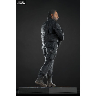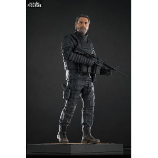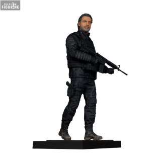 Cette figurine officielle Limited Edition de Rick Grimes est réalisée à l’échelle 1/6 par McFarlane Toys et mesure environ 31 centimètres de haut. Les détails saisissants, notamment dans les textures de son uniforme tactique noir et de ses accessoires réalistes, rappellent le soin apporté à ce produit d’exception. Armé d’un fusil d’assaut et positionné dans une posture prête à affronter le danger, Rick dégage une aura de commandement et de détermination qui plaira aux collectionneurs et aux fans de la série. La base décorée met en valeur le titre emblématique "The Ones Who Live", ajoutant une touche finale parfaite à cette pièce incontournable.