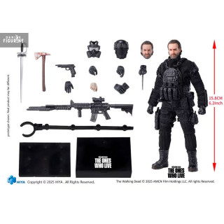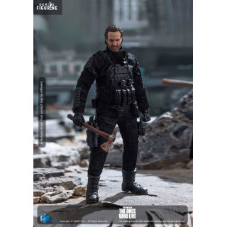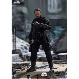 Figurine officielle de Rick Grimes mesurant environ 16 centimètres de haut, à l'échelle 1/12. Elle est issue de la collection Exquisite Super Series. Le fabricant est Hiya Toys.