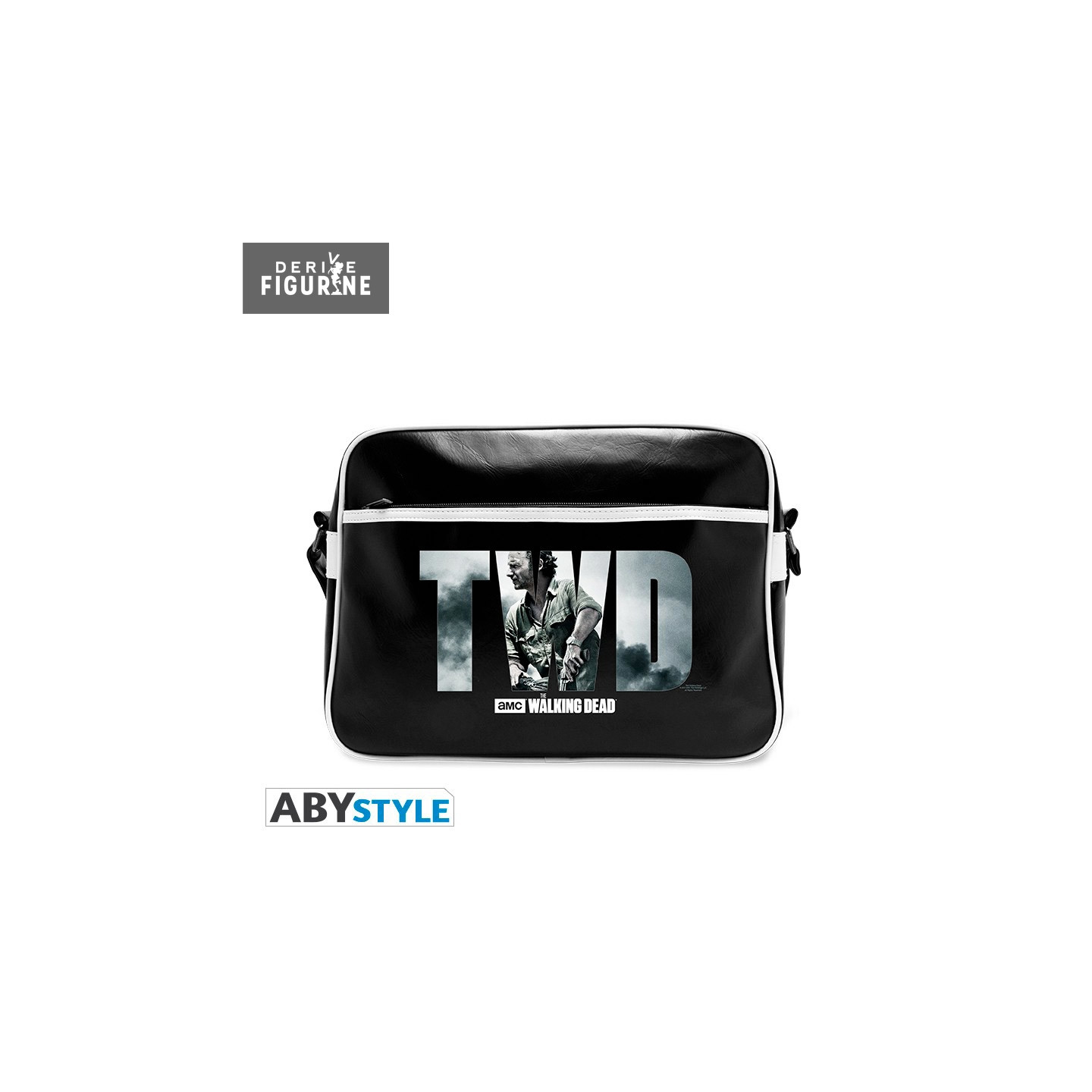 Besace de The Walking Dead en polyuréthane qui mesure environ 29x38 centimètres. Elle possède une poche extérieure zippée, une fermeture éclair pour la poche principale et une sangle réglable. Le fabricant est ABYstyle.