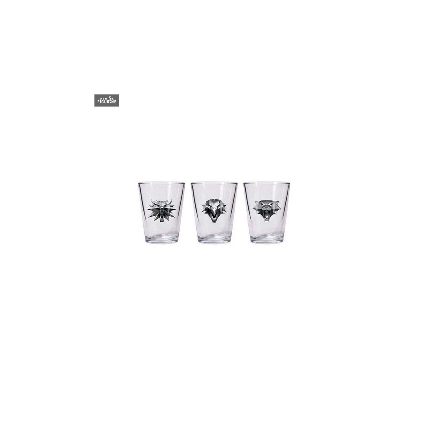 Set de trois verres à liqueur des emblèmes des écoles des sorcelleurs. Disponible un peu moins cher avec un défaut de fabrication (voir photo). Le fabricant est Dark Horse.