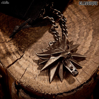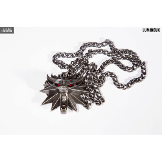 Collier et pendentif de The Witcher 3 en métal avec une chaîne de 76 centimètres au choix entre la version Classique ou Lumineuse. Le fabricant est J!NX.