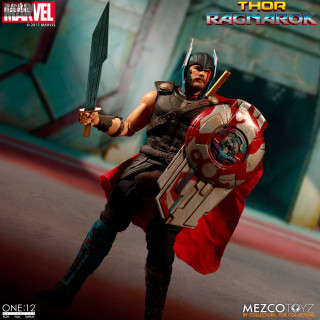 Figurine officielle de Thor d'environ 16 centimètres de haut à l'échelle 1/12. Elle est issue de la collection One:12. Le fabricant est Mezco Toys.