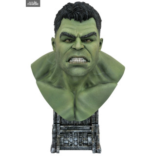 Buste officiel de Hulk en résine mesurant environ 25 centimètres de haut, à l'échelle 1/2. Il est issu de la collection Legends in 3D. Le fabricant est Diamond Select Toys.