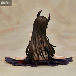 Le design de l’édition Renewal Package met en valeur chaque détail : costume noir sculpté à la découpe osée, empiècements violets aux reflets mats et brillants, et petits cornes délicatement modelés. Sa pose assise, jambes écartées et buste légèrement penché, suggère un mélange de défi et de vulnérabilité. Ses cheveux noirs ondulent autour de son visage impassible, tandis que son regard noisette fixe le spectateur avec une intensité troublante.