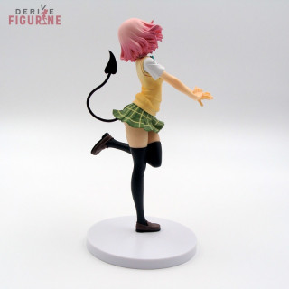 Figurine d'occasion et officielle de Momo Belia Deviluke en ABS/PVC d'environ 17 centimètres de haut. Les mains tendues devant elle, en équilibre sur une jambe, Momo a l'air heureuse. Il s'agit d'un objet d'occasion en parfait état. Le fabricant est FuRyu, vendu avec boîte en assez bon état, mais un peu cabossée.