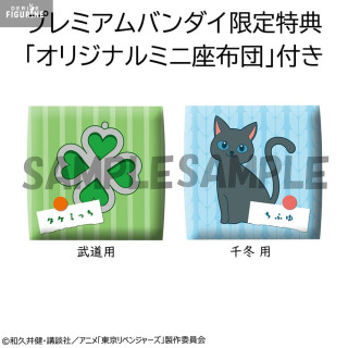 Petit bonus : cette édition spéciale inclut deux mini-coussins d’assise, chacun à l’image du personnage. Le vert à trèfle pour Takemichi (symbolisant sa chance parfois improbable), et le bleu avec un chat noir pour Chifuyu (clin d'œil discret à son calme félin). Une touche rigolote et attachante qui rend ce duo encore plus unique.