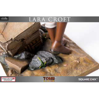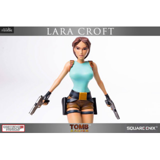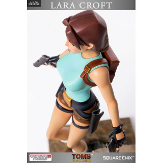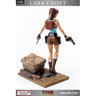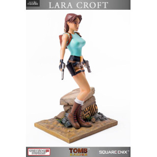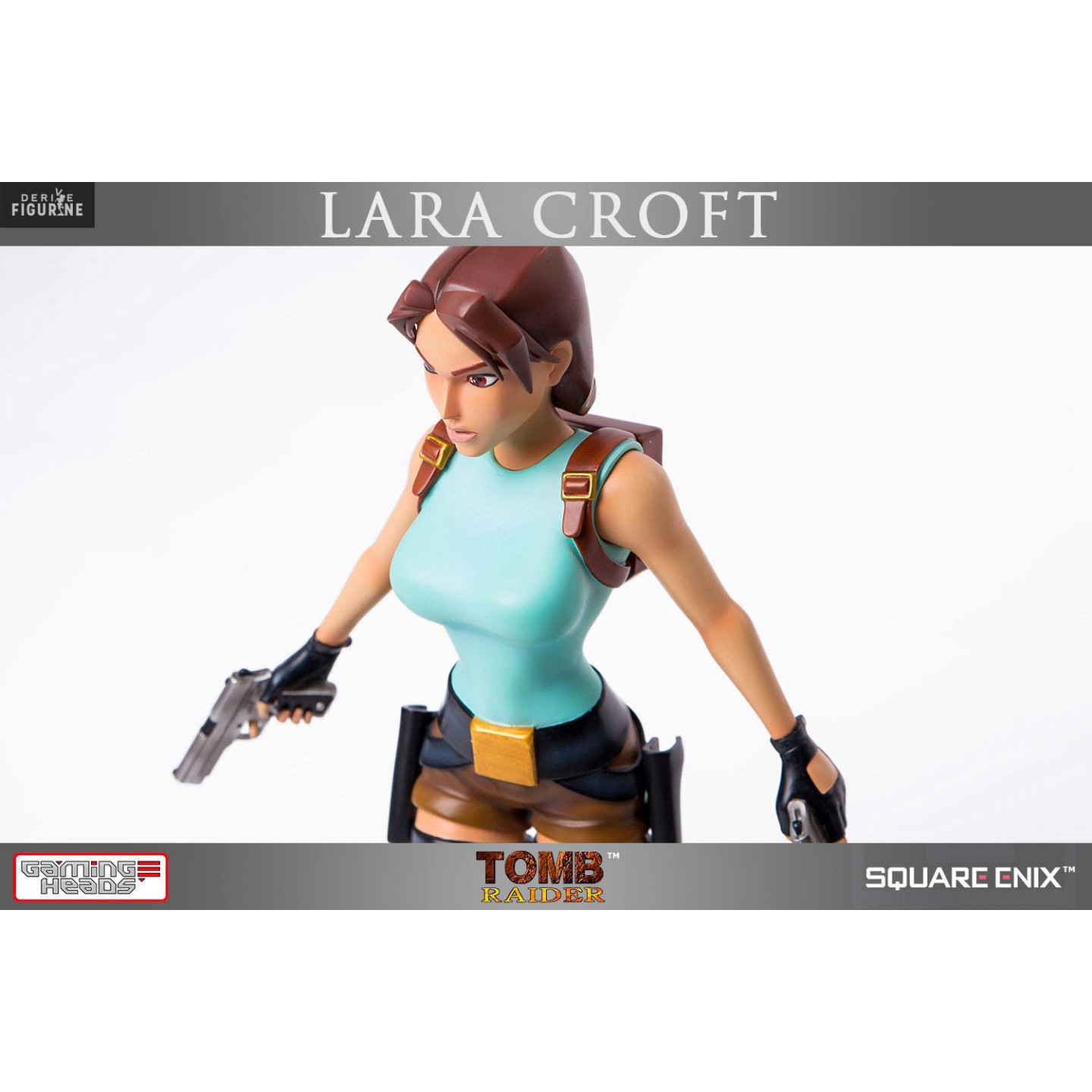 Figurine officielle de Lara Croft en résine mesurant environ 36 centimètres de haut. Le fabricant est Gaming Heads.