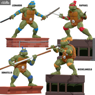 Si on peut penser que les tortues sont des créatures lentes et peu combattantes, ce n'est pas du tout le cas des Tortues Ninja. Si vous êtes un inconditionnel, vous allez adorer ces quatre figurines qui représentent chacun de vos mutants favoris. Il y a donc Michelangelo, Raphael, Donatello ou Leonardo.