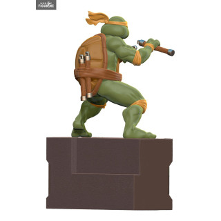 Figurine officielle au choix entre Michelangelo, Raphael, Donatello ou Leonardo en PVC, à l'échelle 1/8. Le fabricant est Pop Culture Shock.