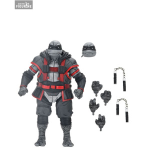 Cette figurine articulée de 18 centimètres, produite par NECA, retranscrit avec une précision impressionnante cette version sombre et imposante de Michelangelo. Livrée avec plusieurs accessoires, elle comprend un visage alternatif, des mains interchangeables, ainsi que ses nunchakus métalliques emblématiques. Son armure détaillée, avec ses touches de rouge et son design renforcé, accentue son apparence intimidante. Une pièce de collection incontournable pour les amateurs de Teenage Mutant Ninja Turtles et des récits plus matures de l’univers.