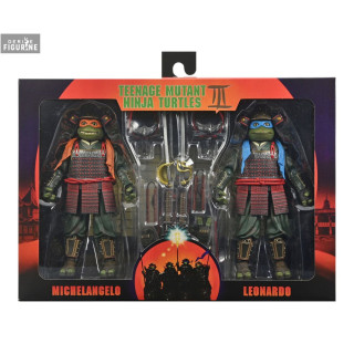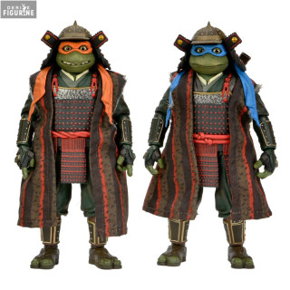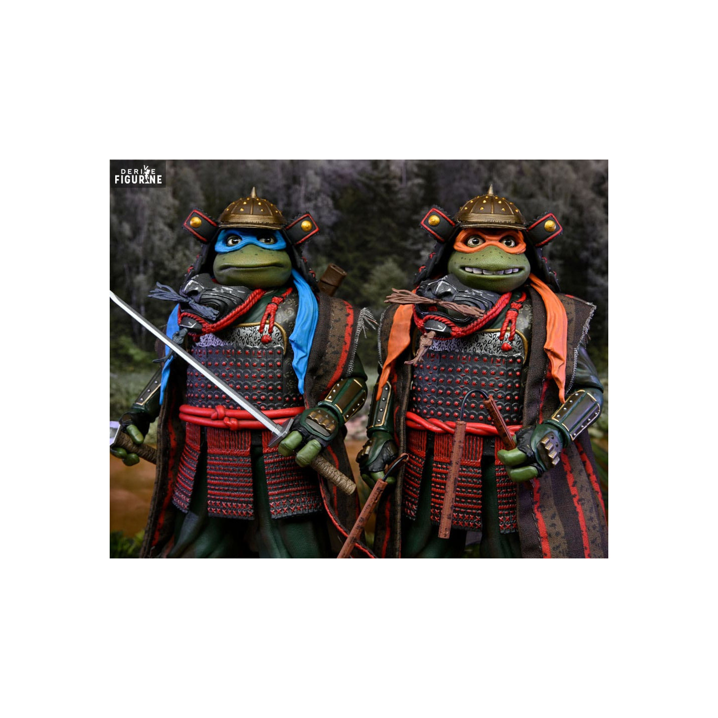 Dans l’univers emblématique des Tortues Ninja, Michelangelo et Leonardo sont deux piliers du groupe de justiciers mutants. Leonardo, le chef discipliné et stratège du clan, manie ses katanas avec une précision redoutable et incarne l’esprit du bushido. Michelangelo, quant à lui, est l’âme insouciante de l’équipe, toujours prêt à détendre l’atmosphère avec son humour décalé, mais également redoutable lorsqu’il utilise ses nunchakus. Ce duo emblématique est ici représenté dans une version inspirée du film "Teenage Mutant Ninja Turtles III", où les tortues sont projetées dans le passé et revêtent des armures de samouraïs japonaises.
