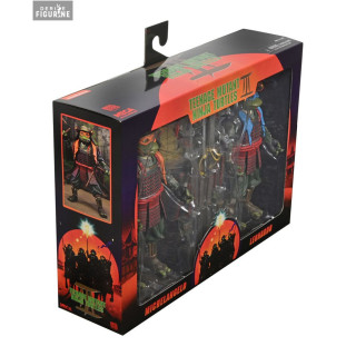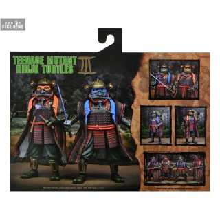 Ce pack, fabriqué par NECA, propose des figurines d’environ 18 centimètres de haut, fidèles aux costumes du film avec leurs armures de samouraïs détaillées. Le soin apporté aux textures et aux accessoires, tels que les katanas de Leonardo et les nunchakus de Michelangelo, accentue l’authenticité de cette version. Le set inclut également des têtes interchangeables avec et sans masque, permettant de recréer différentes scènes emblématiques du film. Le travail sur les articulations permet quant à lui d’adopter des poses dynamiques, rendant hommage aux scènes de combat du long-métrage.