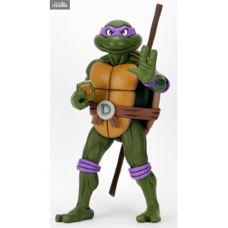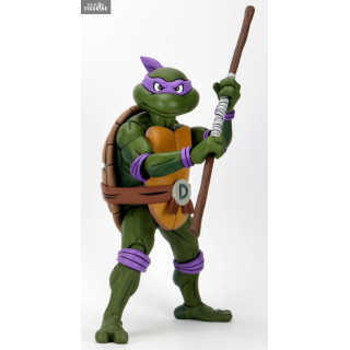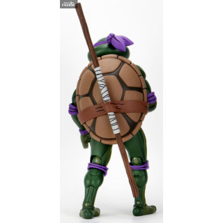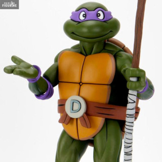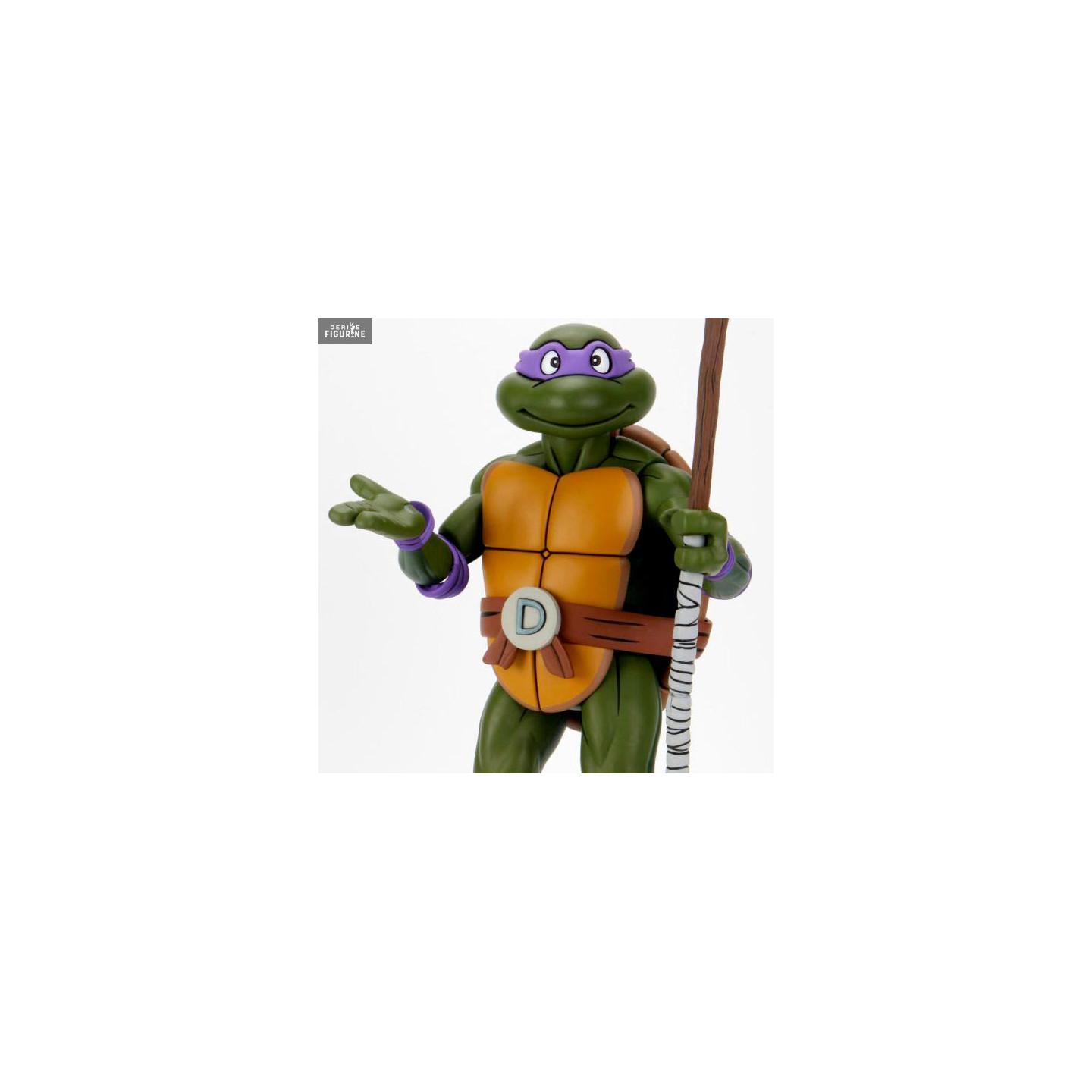 Figurine officielle de Donatello en PVC mesurant environ 37 centimètres de haut, à l'échelle 1/4. Le fabricant est NECA.