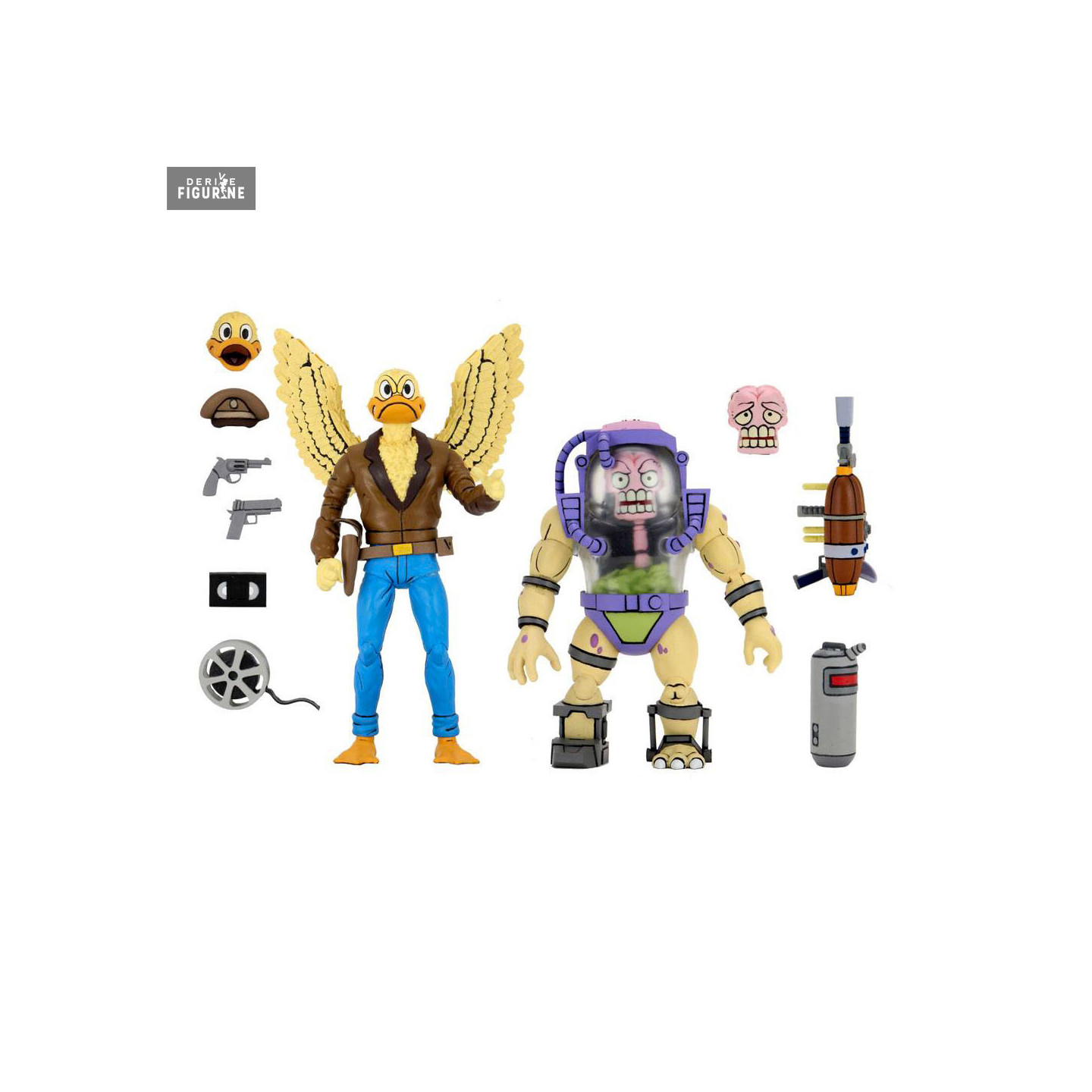 Figurines officielles de Ace Duck & Mutagen Man mesurant environ 18 centimètres de haut. Le fabricant est NECA.