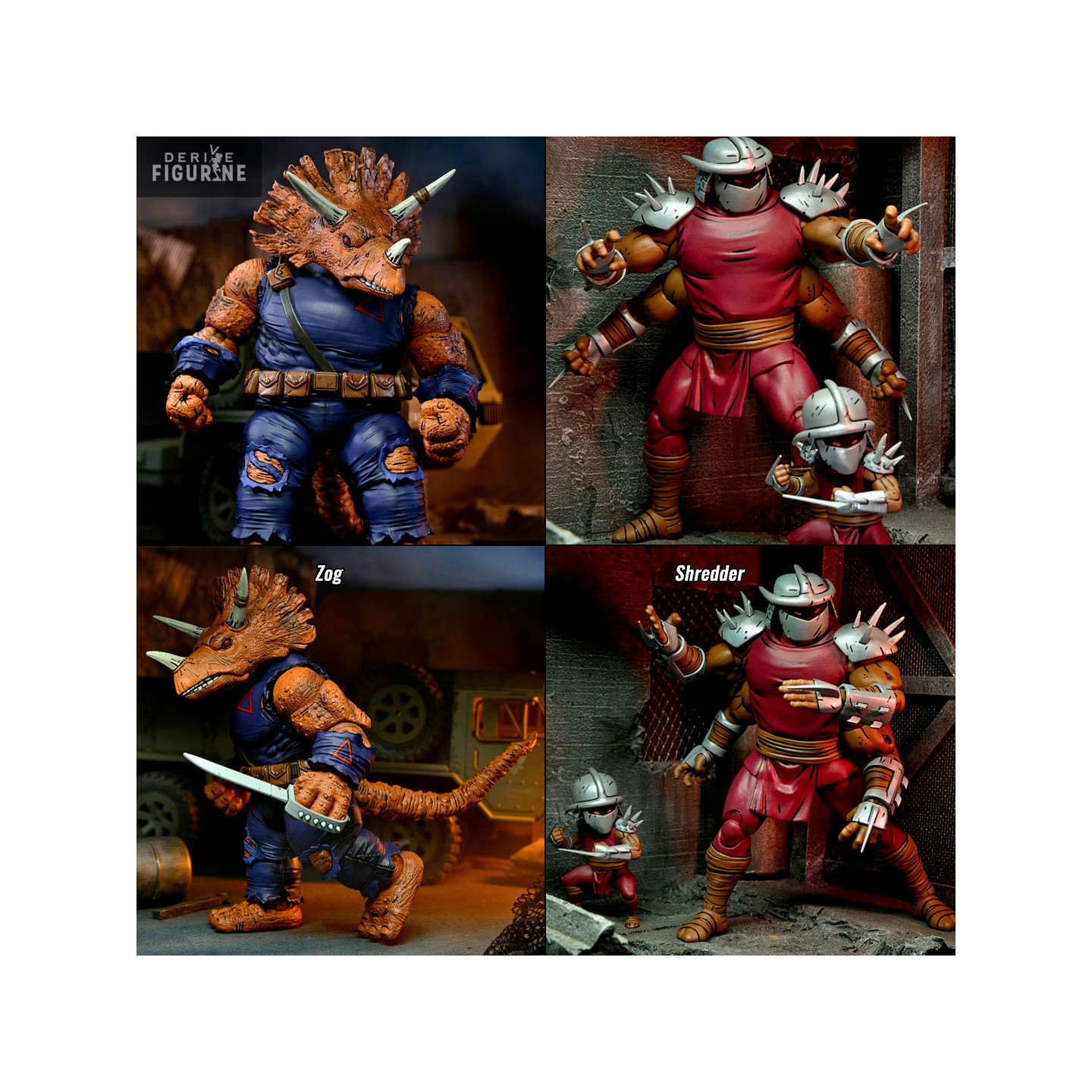 Figurine officielle au choix entre Zog ou Shredder Clone & Mini Shredder mesurant environ 18 centimètres de haut. Le fabricant est NECA.