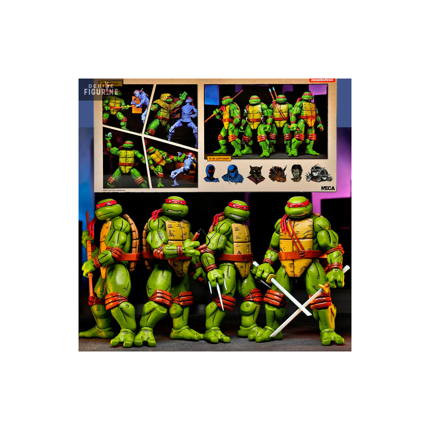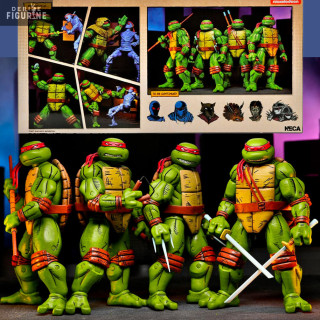 Le pack de figurines des Tortues Ninja comprenant Leonardo, Raphael, Michelangelo et Donatello dans leur version inspirée des Mirage Comics offre aux fans une immersion authentique dans l'univers original des héros à carapace. Chaque tortue est minutieusement sculptée pour capturer les détails distinctifs de leur apparence classique des comics, et le pack constitue un hommage visuel à la première incarnation des Tortues Ninja. Les poses peuvent être dynamiques grâce aux articlations, les expressions fidèles et les accessoires inclus contribuent à donner vie à ces personnages emblématiques dans leur esthétique d'origine, faisant de cette collection un véritable régal pour les amateurs de comics et de ces justiciers masqués.