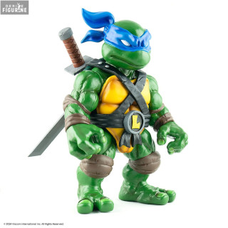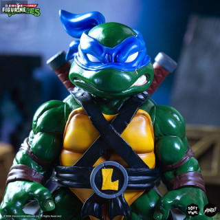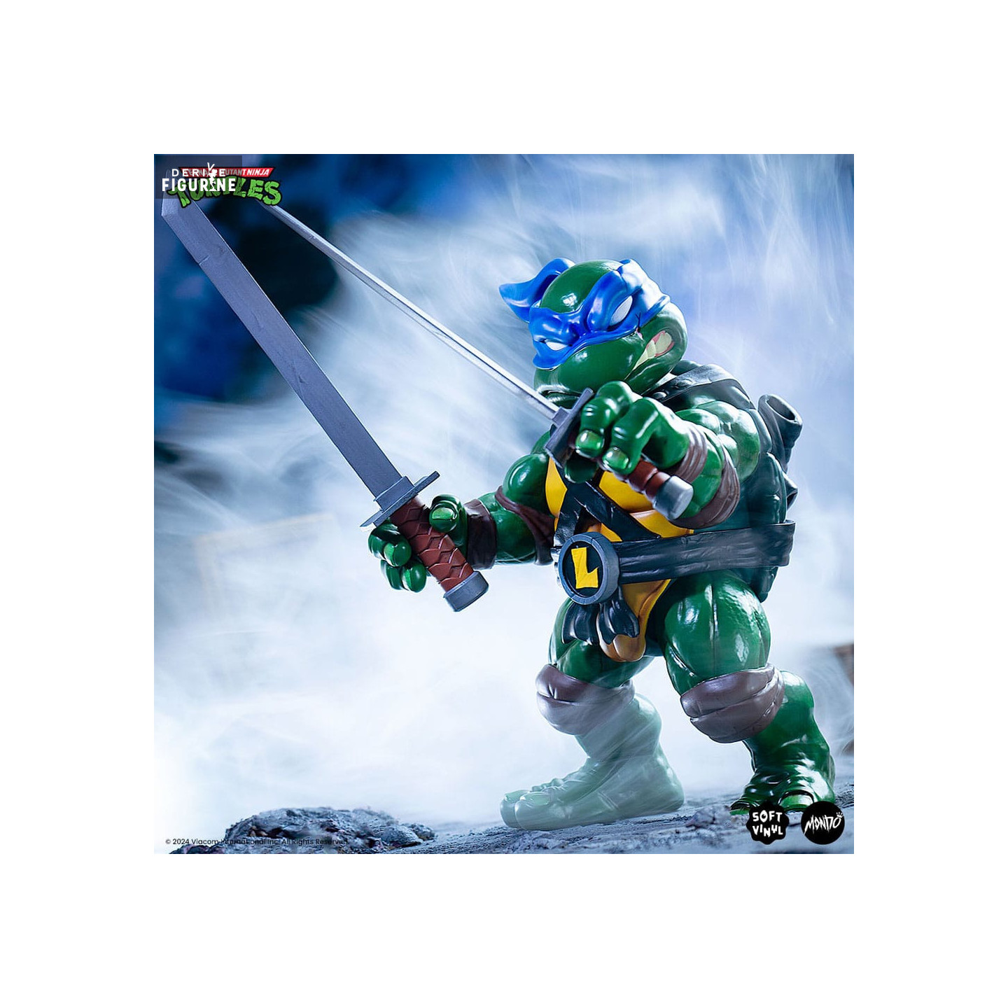 Figurine officielle de Leonardo, Soft Vinyl en PVC mesurant environ 25 centimètres de haut, à l'échelle 1/6. Le fabricant est Mondo.