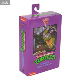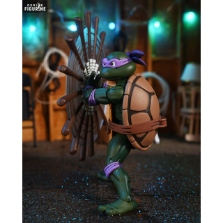 Figurine officielle de Donatello VHS Cartoon mesurant environ 18 centimètres de haut. Le fabricant est NECA.