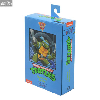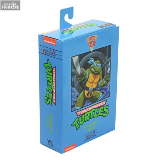 Figurine officielle de Leonardo VHS Cartoon mesurant environ 18 centimètres de haut. Le fabricant est NECA.