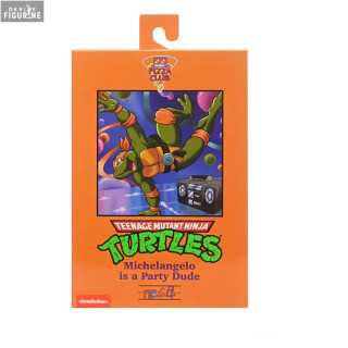 Figurine officielle de Michelangelo VHS Cartoon mesurant environ 18 centimètres de haut. Le fabricant est NECA.