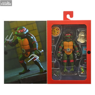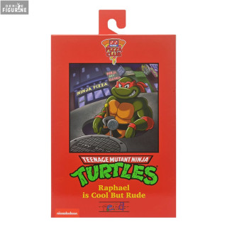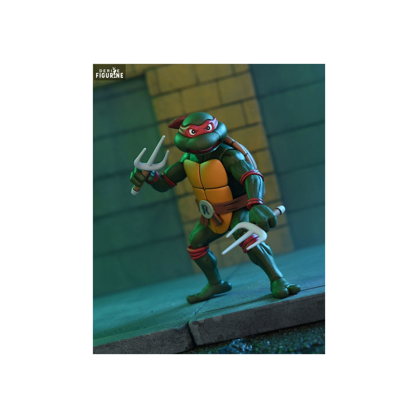 Figurine officielle de Raphael VHS Cartoon mesurant environ 18 centimètres de haut. Le fabricant est NECA.