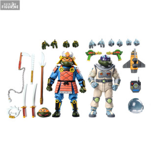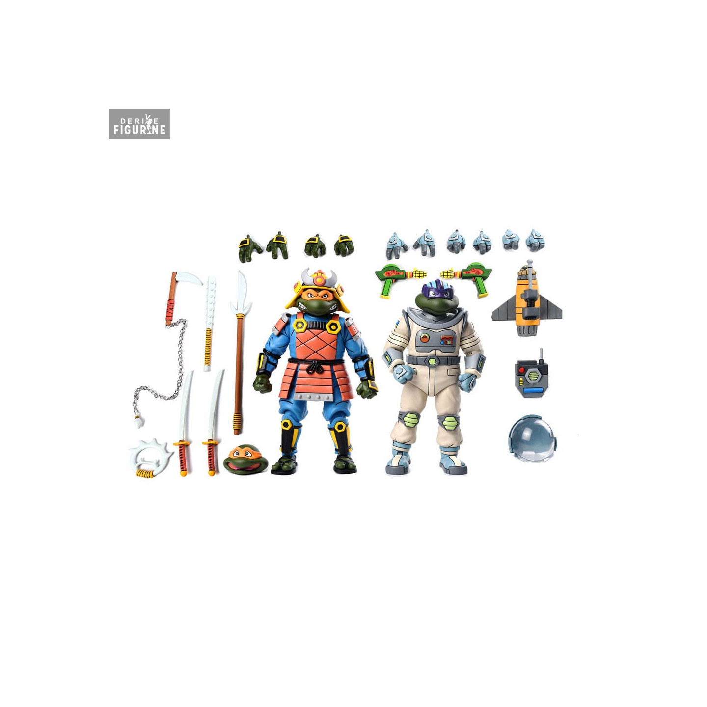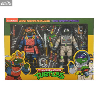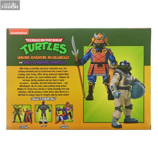 Pack figurines officielles de Space Adventure & Samurai Turtles Cartoon mesurant environ 18 centimètres de haut. Le fabricant est NECA.