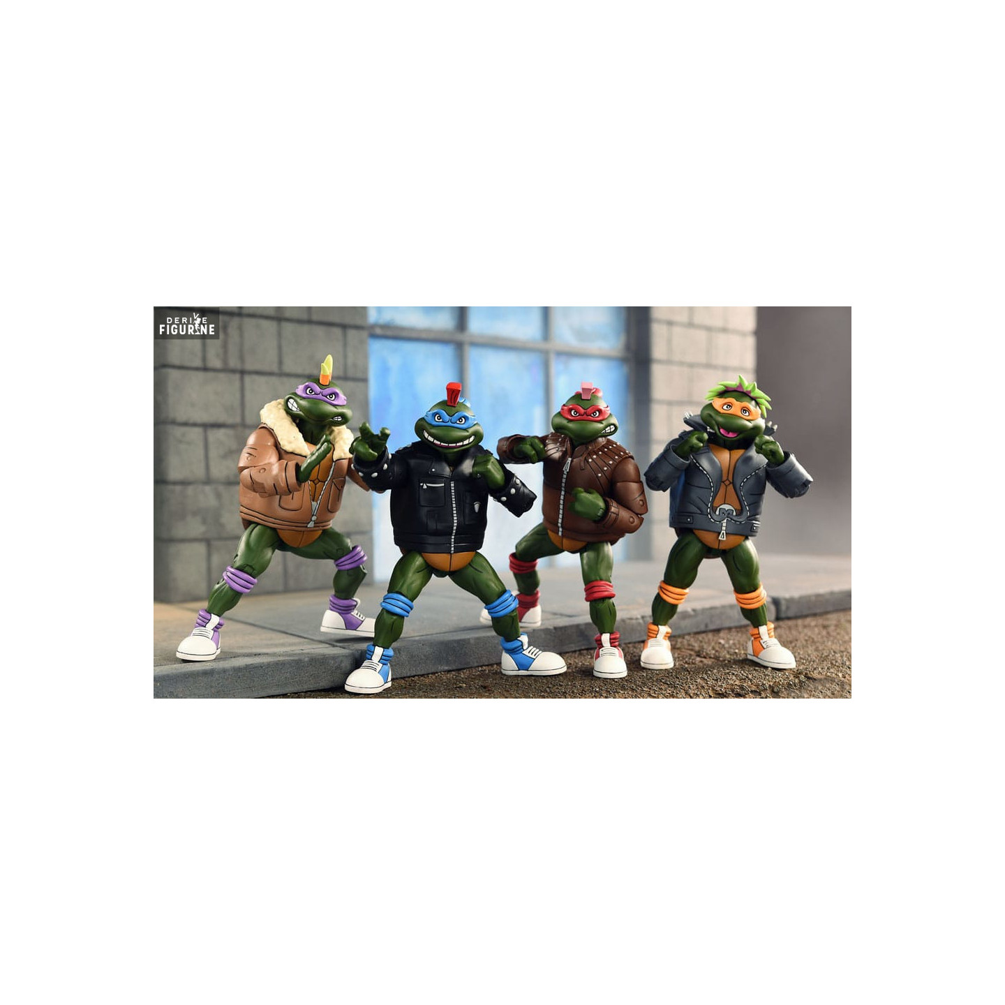 Pack figurines officielles de Punk Turtles Cartoon mesurant environ 18 centimètres de haut. Le fabricant est NECA.