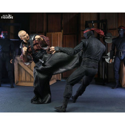 En plus de son réalisme impressionnant, cette figurine Ultimate de NECA est livrée avec un large éventail d'accessoires. Ceux-ci incluent plusieurs paires de mains interchangeables pour des poses variées, une tête supplémentaire avec une expression différente pour capturer l'intensité de Tatsu, un éventail noir orné de caractères japonais, un masque démoniaque rouge, et diverses armes comme un katana et un bâton. Tous ces accessoires permettent aux collectionneurs de recréer leurs scènes préférées du film avec une grande précision.