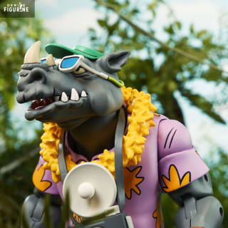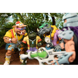 Dans ce pack « Vacation », Bebop et Rocksteady adoptent une allure totalement décalée, vêtus pour des vacances relaxantes qui contrastent avec leur rôle habituel de brutes de Shredder. Bebop, avec son short hawaïen, son sac de plage et ses lunettes de soleil flashy, semble prêt à conquérir la plage. Rocksteady, avec son appareil photo vintage, sa chemise fleurie et son chapeau stylé, arbore un look de touriste parfait. Ces détails amusants apportent une touche de fraîcheur et d’originalité à ces personnages déjà iconiques.